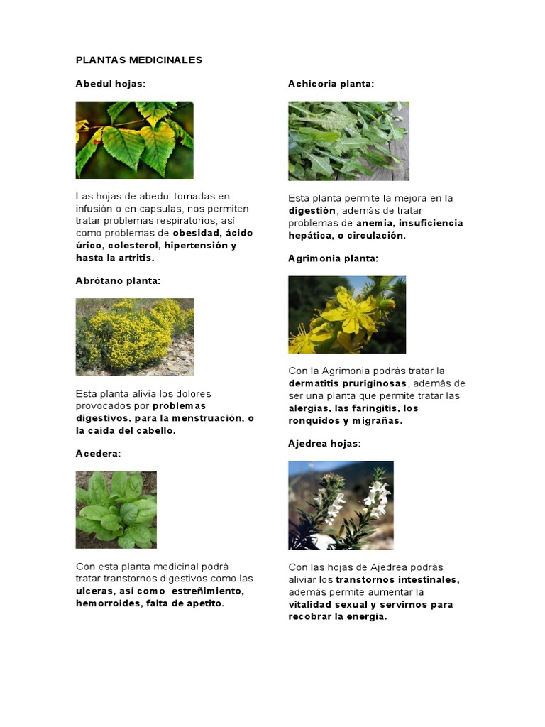 This paper reviews the recent literature on synergism adulteration and risks of using medicinal plants. Plantas de Uso Medicinal en Guatemala. La parte utilizada de esta planta con fines medicinales son sus hojas.
